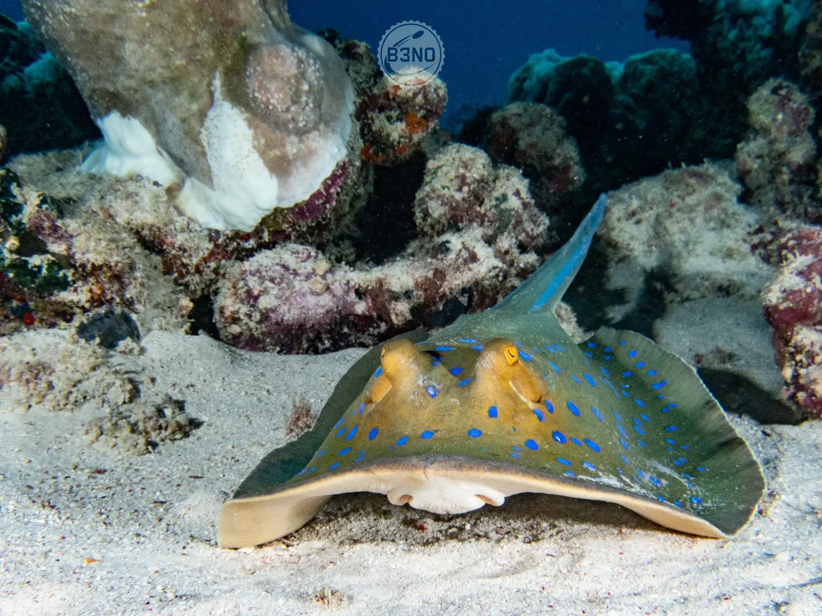 1ère plongée au nitrox 31%. Gros chinois (sling-jaw wrasse). Raie pastenague. Murène blanche. Petites crevettes transparentes. Tous les copains. Scorpion fish. Gros barracuda à la fin en surface