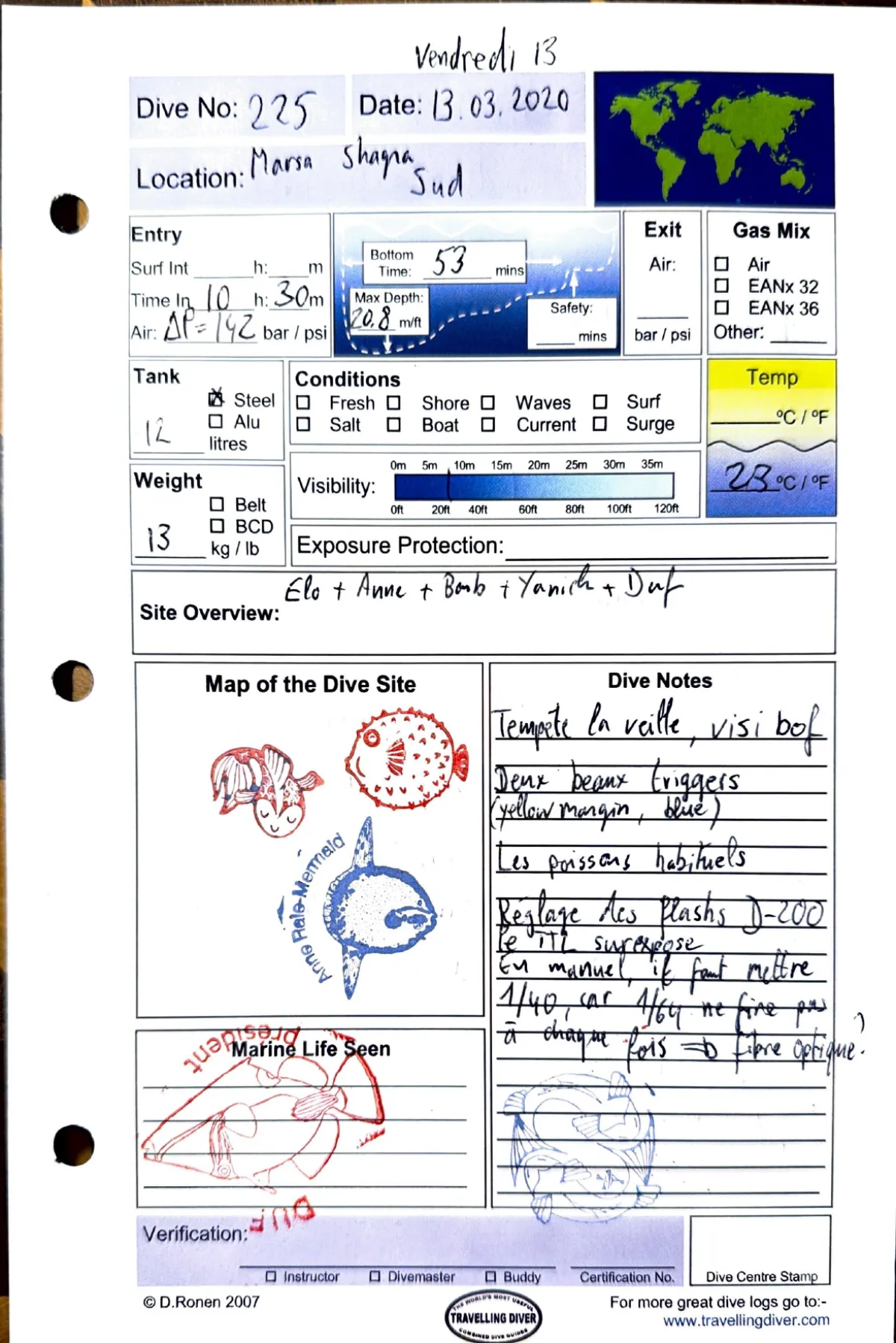 Tempête la veille, visi bof. Deux beaux triggers (yellow margin, bleu). Les poissons habituels. Réglage des flashs D-200 : le TTL surexpose en manuel, il faut mettre 1/40 car Abyz ne fire pas à chaque fois, libre optique