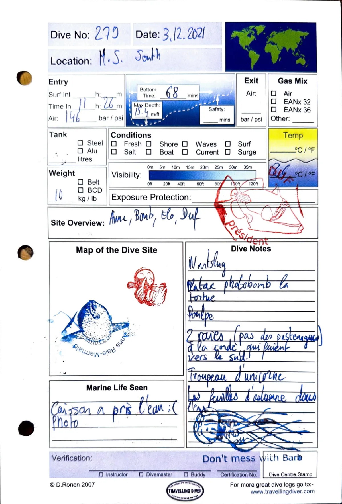 Wartslug. Platax photobomb la tortue. Poulpe. 2 raies (pas des pastenagues) a la corde qui fuient vers le sud. Troupeau d'unicorne. Les feuilles d'automne dans l'eau. Caisson a pris l'eau photo :(